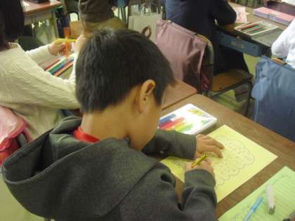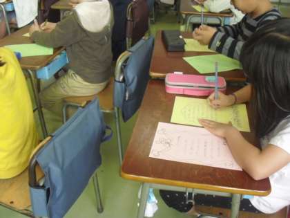 学校を去られた、お世話になった先生方、主事さん方に向けて、手紙を書いていました。