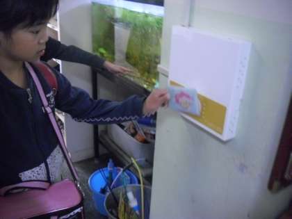 玄関口で 「ピッ」 と今日もタッチ・・・ 学校に到着しましたよ〜