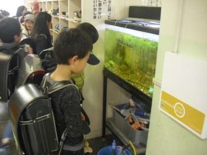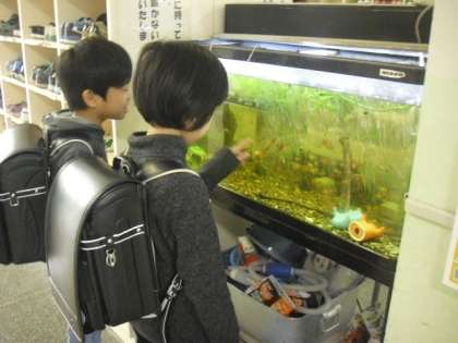 元気に泳ぎまわるグッピーたちもみんなをお出迎え〜