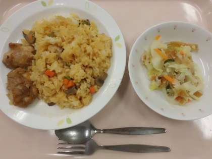 チキンライス・牛乳・鶏肉の照り焼き・パリパリサラダ