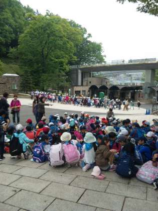本日は22団体の遠足が入っているそうです。青いバンダナが千歳っ子の目印〜