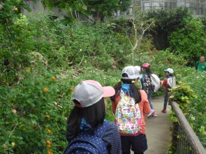 ちょうが放し飼いされている昆虫館内でちょうを間近で見学しました。