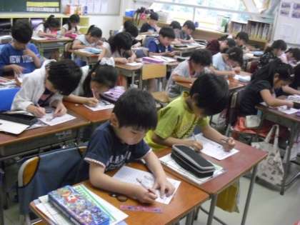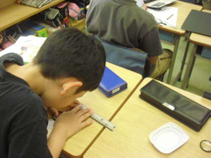 大きさを測ったり、色、手さわりなどについて記録していました。