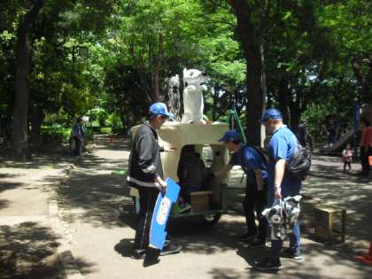 千歳小のおやじの会の皆様も、どろんこハリーのリヤカーバスコーナーを担当し、小さな子どもたちを楽しませていました。