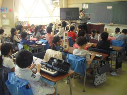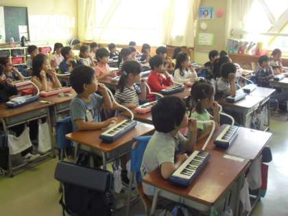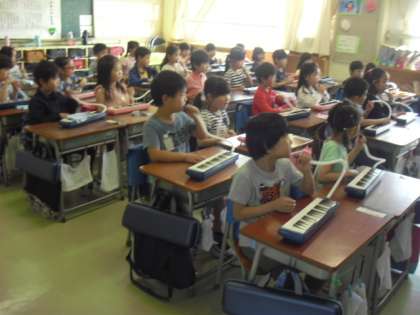 1年生の鍵盤ハーモニカのおけいこが始まりました。