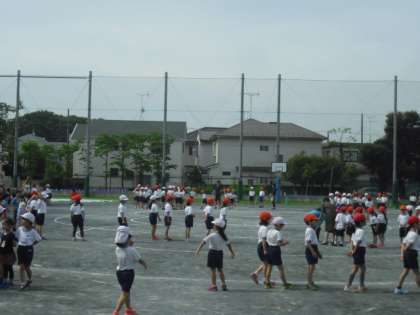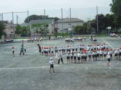 校庭でクラスごとの長縄跳びが始まりました〜