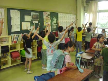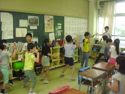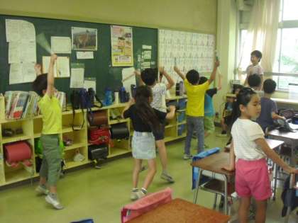 教室をのぞいてみると、子どもたちが運動会の自主練習中でした〜