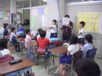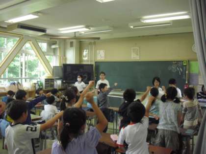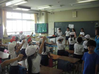 応援団の子どもたちが各クラスでの応援練習をしています。