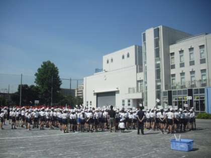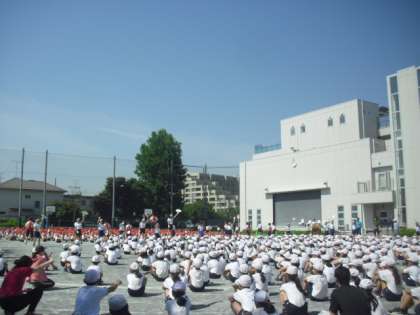 整列し応援団の掛け声に合わせ、練習がはじまりました〜