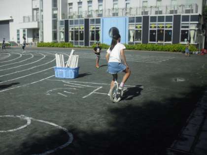 校庭を駆け抜けたり、スカットボーイを投げて遊んだり・・・・
