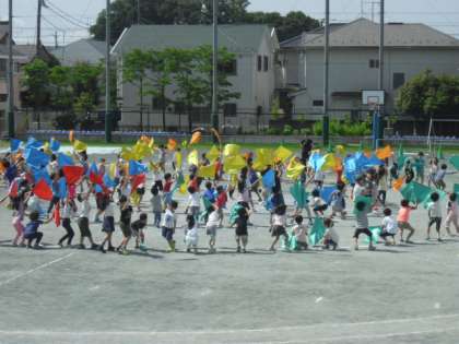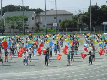 旗をなびかせ、楽しそうに踊っていますよ〜