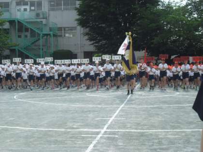 吹奏楽団の演奏に合わせ、みんなで元気に行進〜