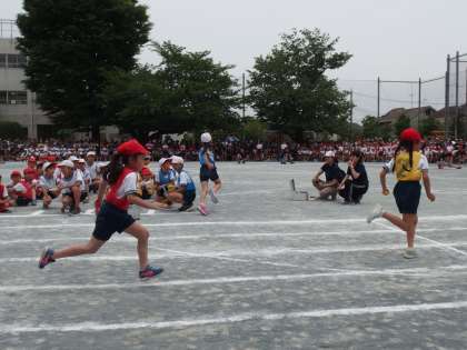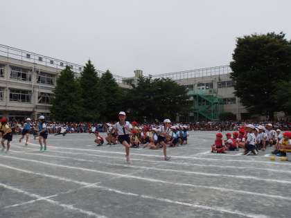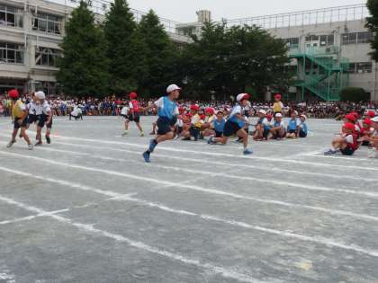 赤チームも、白チームも校庭を思いっきり駆け抜けました〜