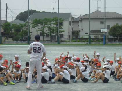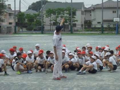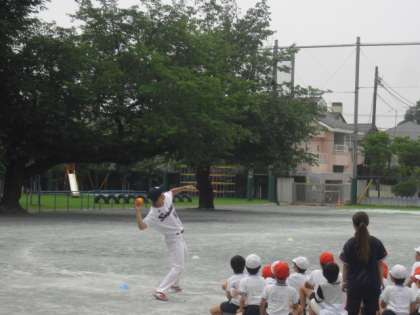 投力低下改善に向けて、東京ヤクルトスワローズの出前授業「投げ方教室」を実施しました。コーチのご指導のもと、練習に励んでいます。