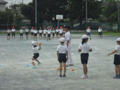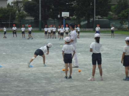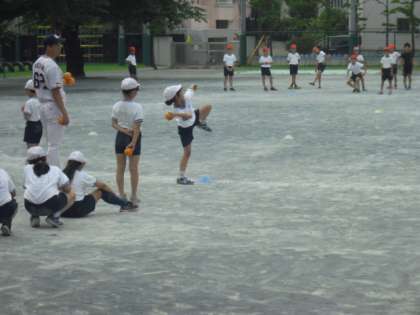 ボールをもっていないほうの手を投げたい方向へ向ける。