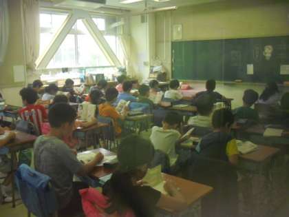漢字プリントに挑戦し、その場で答え合わせ・・・