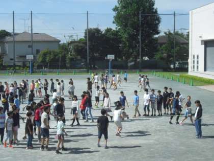 高学年は自分たちで回し手も決めて長縄とびを開始です。
