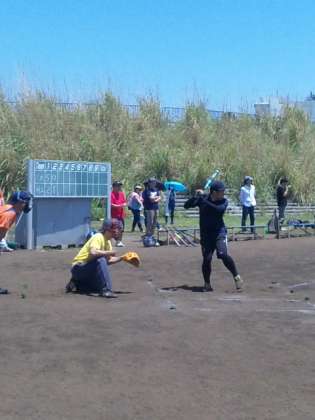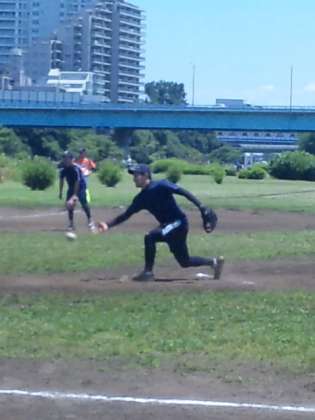二子玉川グランド世田谷区内小学校での対戦、先生たちも参加しています。第一試合は見事勝利!