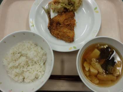 ごはん・牛乳・あじフライ・キャベツのごまあえ・豆腐のみそ汁