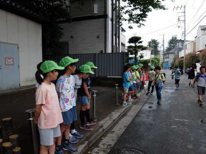 あいさつ週間では4年生が元気よく、登校してくる友達にあいさつをしています。