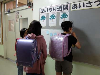 思いやり週間では、校長室の前のけい示板にある思いやりの木に、