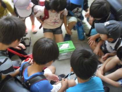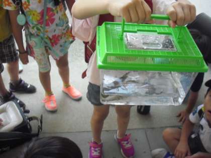 見ると、ザリガニを捕まえ、もって来た子どもが・・・