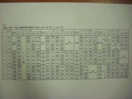 事前に家庭数でお配りしました時間割予定表をご参照のうえ、ご都合のつく範囲でどうぞご参観ください。