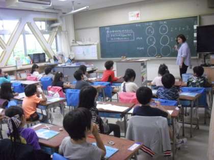 問題場面を使って、0のたし算について理解したり、たし算の問題作りに取り組んでいました。