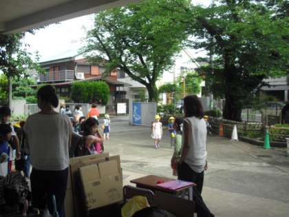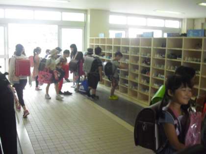 正面玄関では千歳っ子まつりのバザーの寄贈品の回収が始まりました。