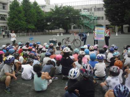 自転車の安全な乗り方についての学習が、成城警察の方々のご協力のもとに始まりました。