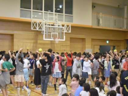 クラスごとに一つのボールを送るゲームです。