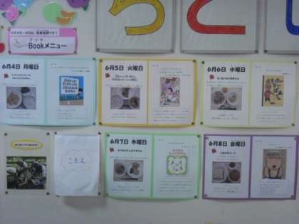 読書週間にちなんで本に登場する材料での料理の紹介が掲示されていました。