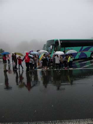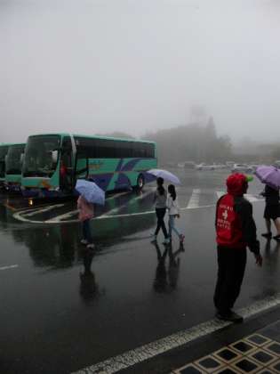 晴れていると美しい山並みが見れるのですが今日は霧がかかっています。