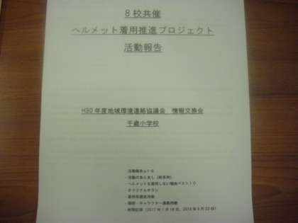 今日は警察署からの情報提供とともに、近隣8校で実施した自転車のヘルメット着用推進プロジェクトの活動報告や千歳小での取り組みについての報告もあります。