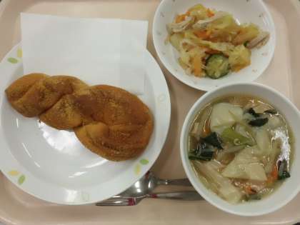 きなこあげパン・牛乳・ワンタンスープ・春雨スープ