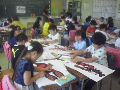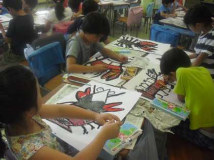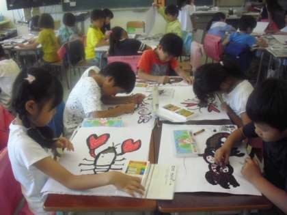 ザリガニに彩色が始まり、ダイナミックな作品が出来上がっていましたよ〜。
