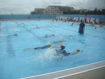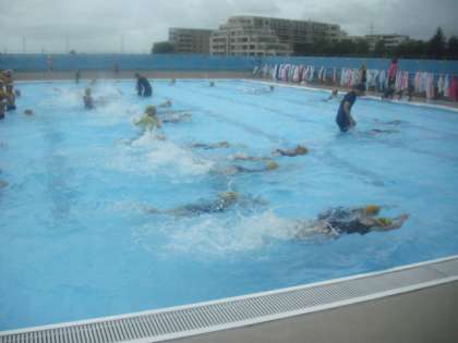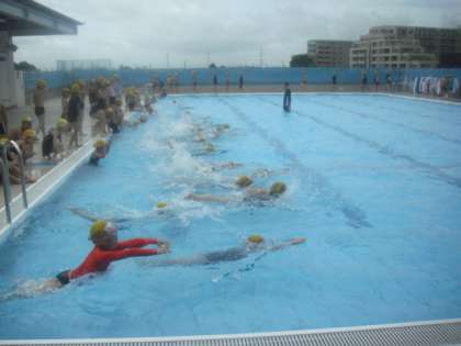 発展的な学習として、いろいろな浮き方や、「け伸び」をすることや、補助具を使って初歩的な泳ぎに取り組むこともめざしています。