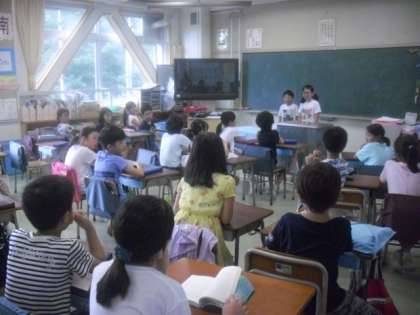 代表の子どもが昨日の出来事をスピーチしているクラスもありましたね・・・
