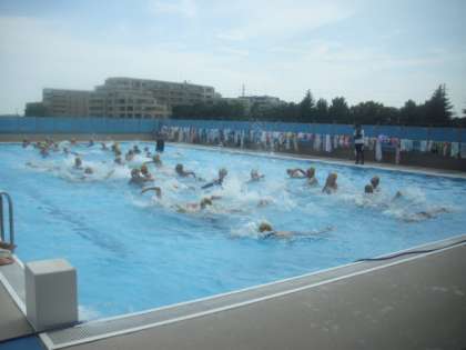 低学年では「水遊び」、中学年では「浮く・泳ぐ運動」と言っていたプールでの学習