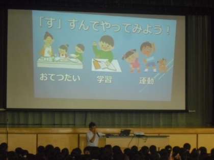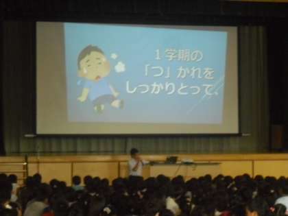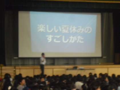 生活指導主任から夏休みの過ごし方についてスライドを使いながら話しました。