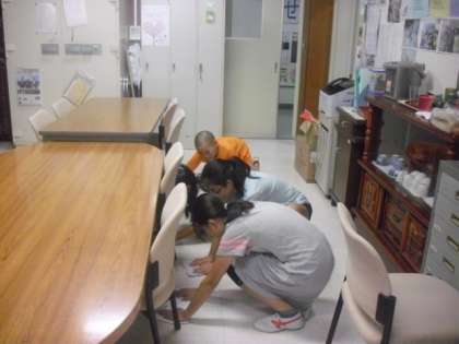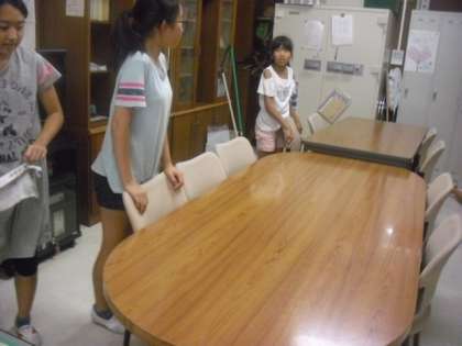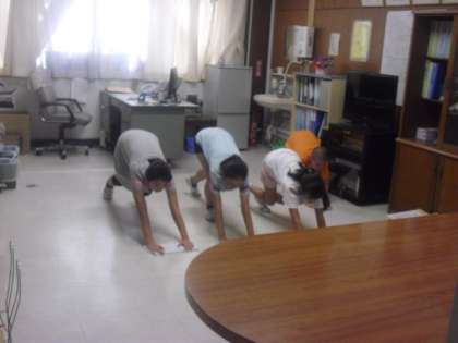 つくえ、椅子を移動して、本格的に拭き掃除が始まりましたよ〜。