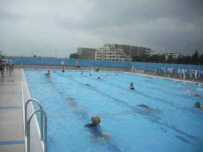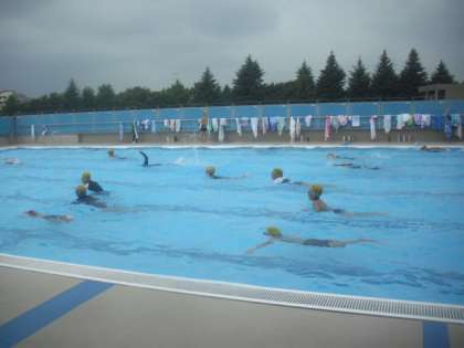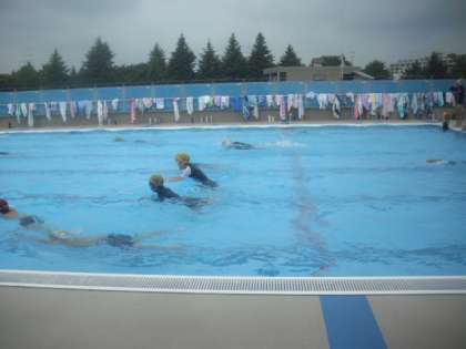プールを縦に使って息継ぎをし、フォームに気を付けて練習をしました〜