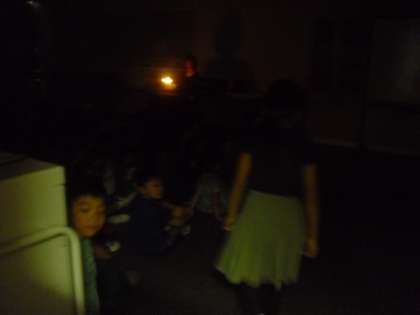 図書室では、暗闇の中で夏のお話会、こわーいお話が始まりましたよ〜