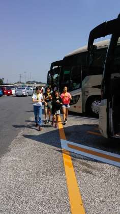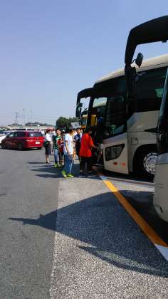 羽生PA に着きました。バスの中ではゲーム、クイズなどで盛り上がっていました。