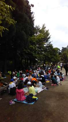 杉並木公園に着きました。行動班ごとに昼食です。朝早くからのお弁当作り、ありがとうございました。