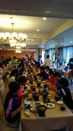 宿での夕食です。みんなと一緒に食べる食事は楽しく食もすすんでいるようです。