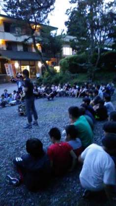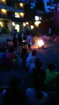 キャンプファイヤーの開始。学年全体での思い出作りが始まりました。