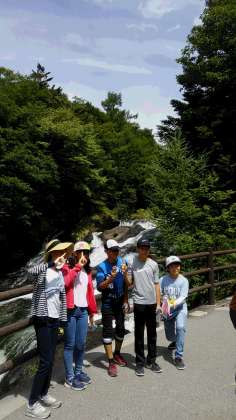 竜頭の滝に着きました。このバスで赤沼に向かいます。