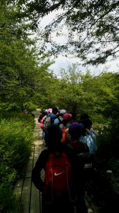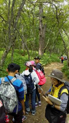 ハイキング開始、ネイチャーガイドさんの話を聞きながらゴールを目指して進みます。