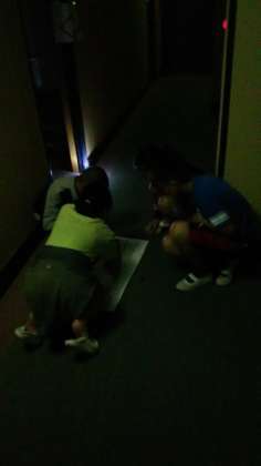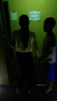 肝だめしが始まりました。ちょっとこわい話を聞いて出発〜どきどききながら、ミッションをこなしています。